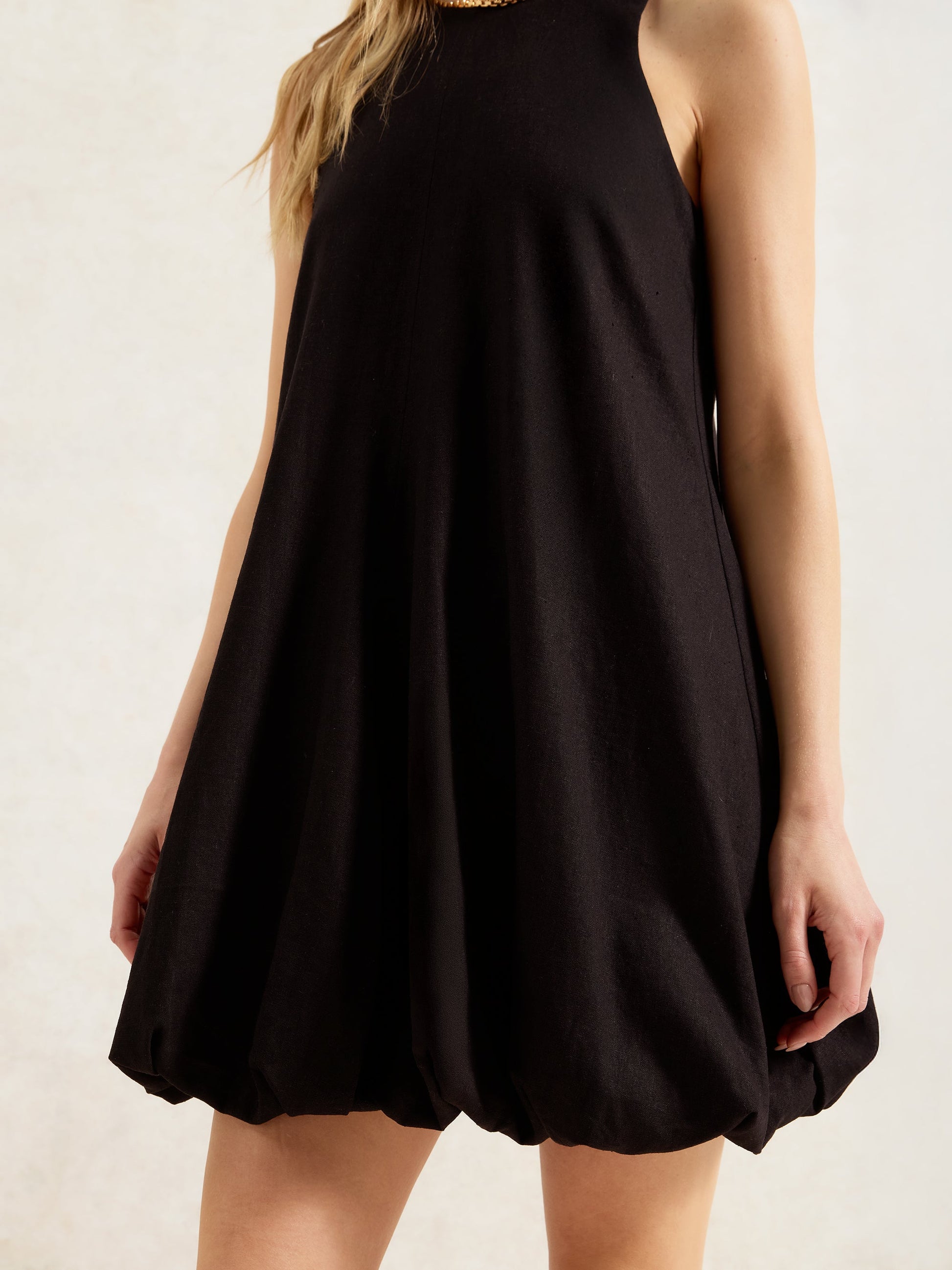 Chic, sculptural, and effortlessly elevated ¡ª the Black Puffball Linen Blend Dress is a the perfect summer staple. Crafted from a lightweight linen blend, this sleeveless style falls into a voluminous puffball hem that adds a playful twist to a clean, minimalist cut. An?easy slip-on piece with serious style mileage ¡ª just add strappy sandals for dinner dates or chunky flats for daytime polish.